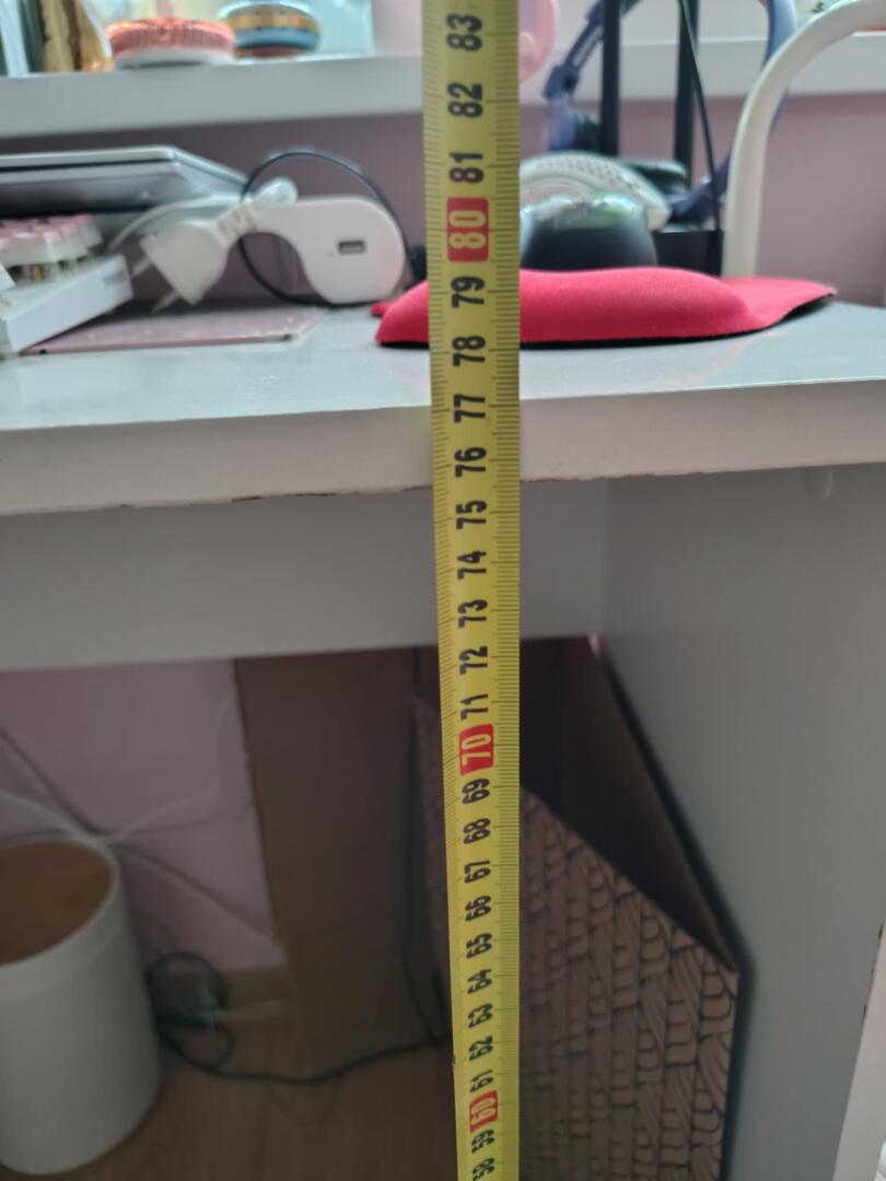 Biurko narożne białe używane przez dziewczynkę z śladami użytkowania. z płyty wiórowej