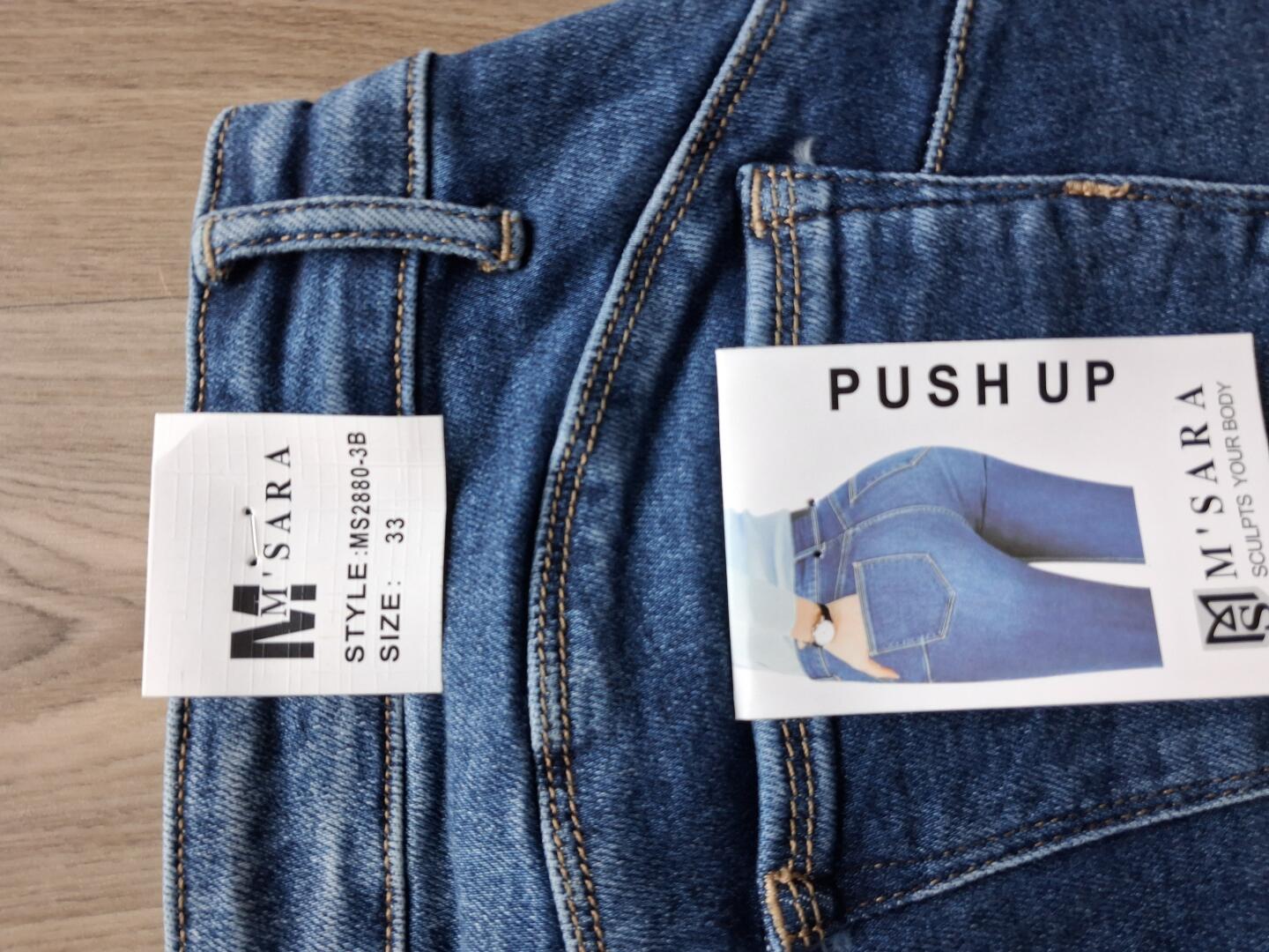 - spodnie jeansowe Push Up M Sara rozmiar 33 (dł. nogawki 97cm, pas na płasko 42cm×2, uciągną się do 50cm×2)