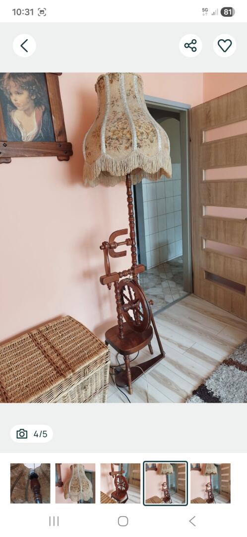 Grajewo ogłoszenia: Lampa podłogowa dębowa w kształcie kołowrotka antyczna...
